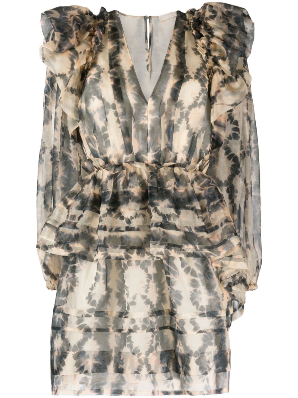 Adelaide abstract-print silk minidress From Ulla Johnson’s ethereal SS23 runway, this Adelaide dress is made from silk organza and enlivened with a custom stained glass print. It’s traced with frothy ruffles draw the eye to the plunging neckline. Highlights - Beige/navy - Silk - Organza - All-over graphic print - Ruffled detailing - V-neck - Concealed side zip fastening - Rear button fastening - Long sleeves - Elasticated cuffs - Straight hem - Thigh-length Imported Composition Lining: Cotton 72%, Silk 28% Outer: Silk 100% SIZE & FIT Model measurements Height 5 ft 10 in(1.78 m) Bust/Chest 29.92 in(76 cm) Hips 34.64 in(88 cm) Waist 23.62 in(60 cm) FittingInformation Designed for a close fit at the chest and waist with a loose fit at the hip Made from a midweight non-stretch fabric This piece fits true to size – take your usual size Washing instructions Dry Clean Only