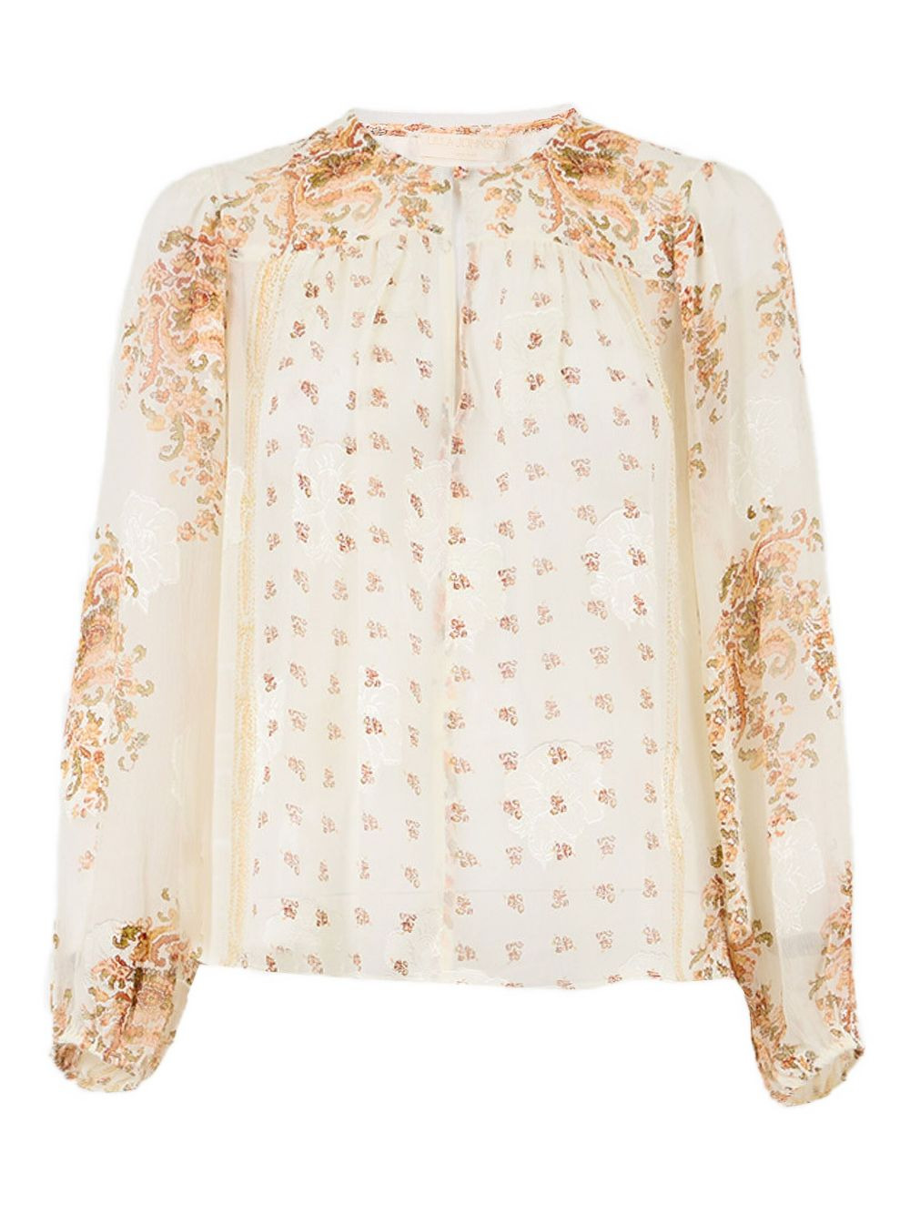 Aster long-sleeve blouse Highlights - Beige - Floral print - Long sleeves - Gathered neckline - Button fastening Imported Composition Silk 64%, Viscose 36% Washing instructions Read Manufacturer Guidelines