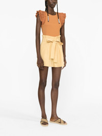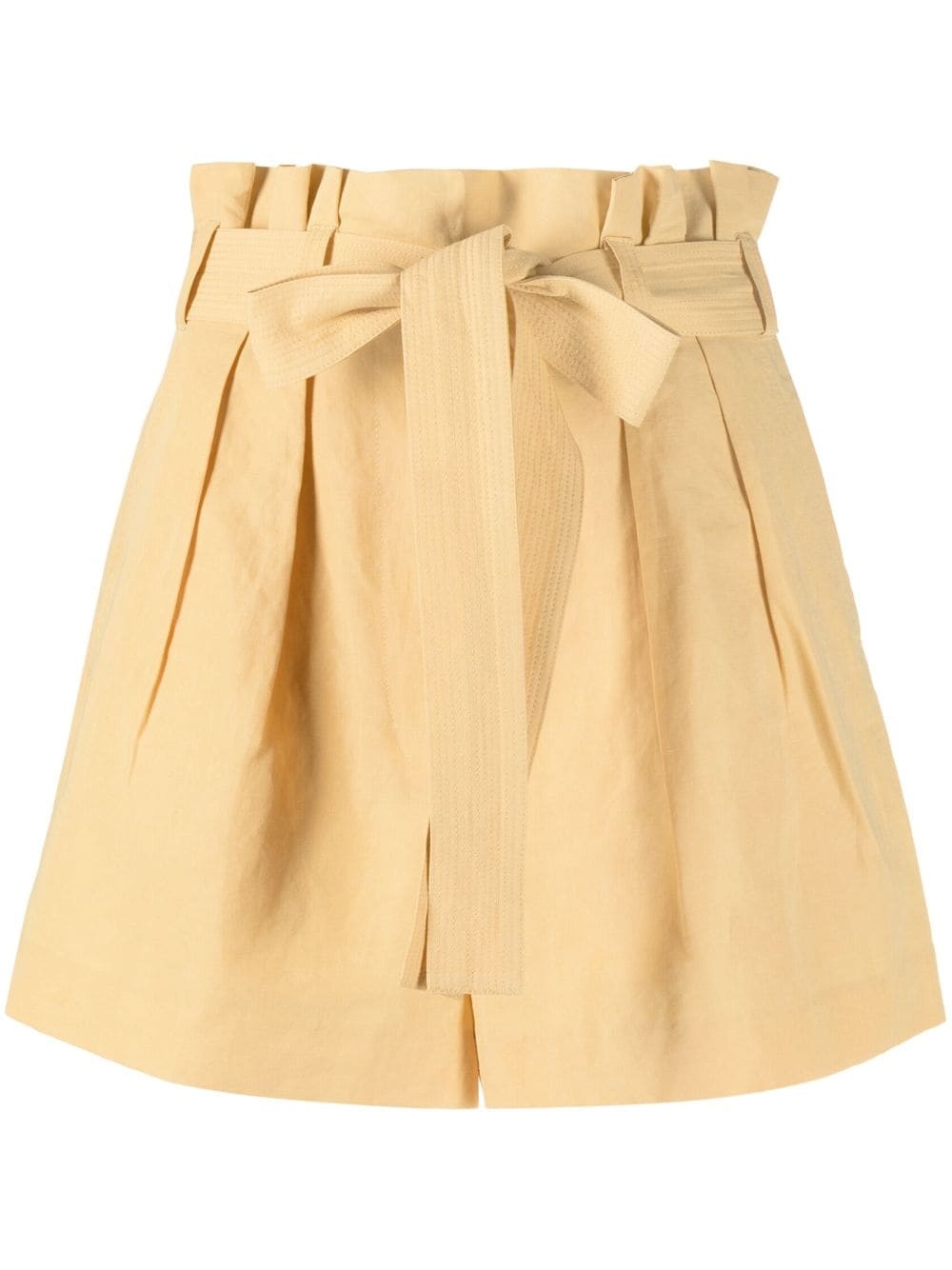 belted-waist shorts Ulla Johnson is known for an elegant design style with a modern twist. Showcased on these shorts from the AW23 collection, the garment is rendered in a pastel-yellow hue and boasts a linen and cotton construction for an avant-garde finish. Highlights - Pastel yellow - Cotton-linen blend - Elasticated waistband - Belt loops - Belted waist - Two rear welt pockets Imported Composition Outer: Cotton 53%, Linen/Flax 45%, Silk 2% Lining: Polyester 100% SIZE & FIT Model measurements Height 5 ft 10 in(1.79 m) Bust/Chest 31.1 in(79 cm) Hips 35.03 in(89 cm) Waist 24.01 in(61 cm) FittingInformation Designed for a loose fit, offering comfort and movement when worn The tie fastening gives an adaptable and personalised fit Made from a midweight non-stretch fabric This piece fits close in all sizes – take your usual size