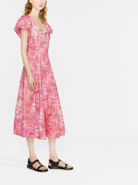 botanical-print zip-up dress botanical-print zip-up dress from ULLA JOHNSON featuring blush pink, cotton, flared, botanical print, scoop neck, front zip fastening, short sleeves, fitted waistline and mid-length. Imported Composition Cotton 100% SIZE & FIT Model measurements Height 5 ft 10 in(1.78 m) Bust/Chest 31.49 in(80 cm) Hips 35.43 in(90 cm) Waist 24.4 in(62 cm) FittingInformation This piece fits true to size. We recommend you get your regular size Designed for a close fit at the bust and waist, but loose at the hip Made with a mid-weight non-stretch fabric