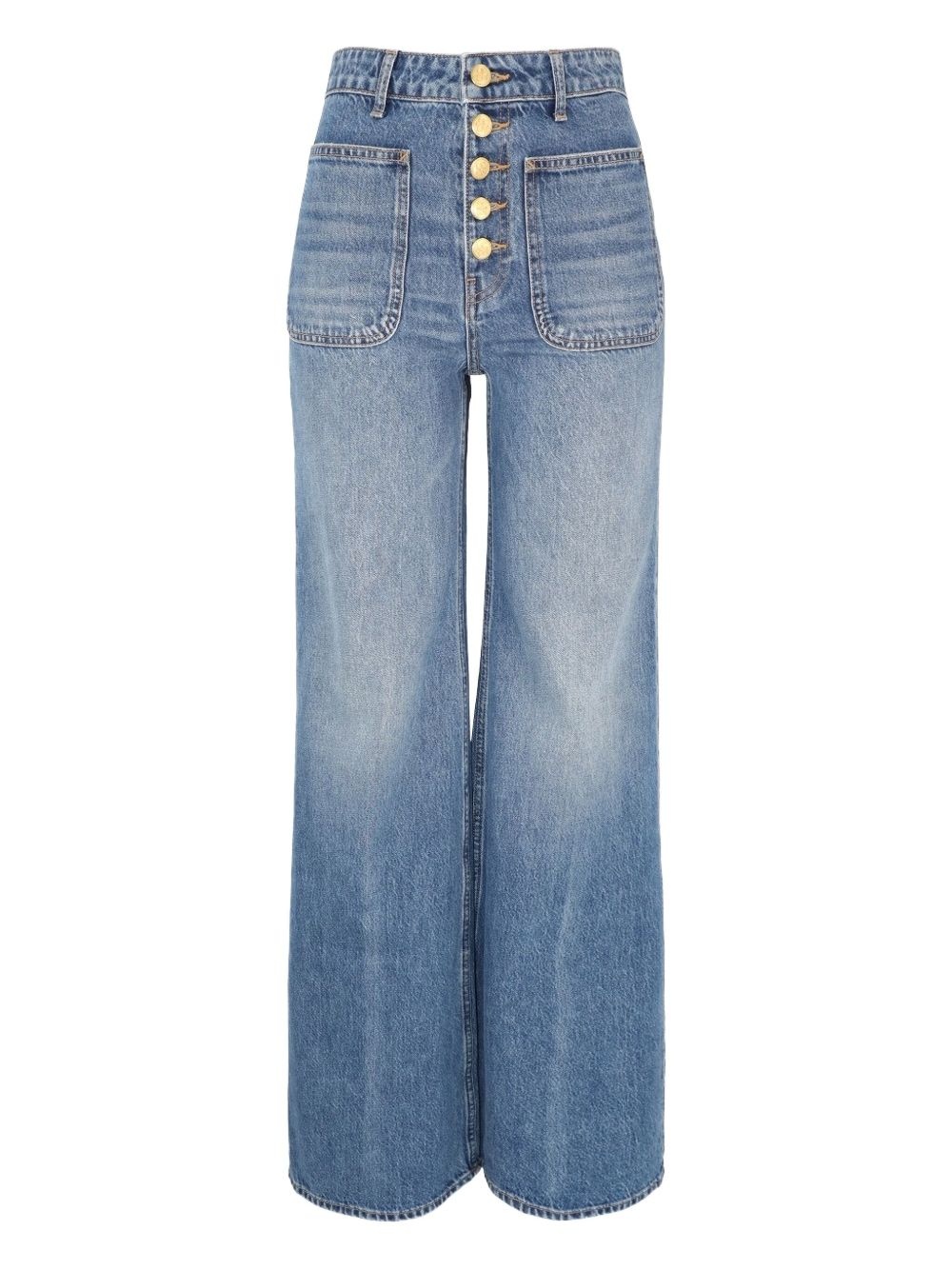 button-front jeans Highlights - Light blue - Button fastening - High-rise waist - Front patch pockets - Back welt pockets Made in United States Composition Cotton 100% Washing instructions Read Manufacturer Guidelines