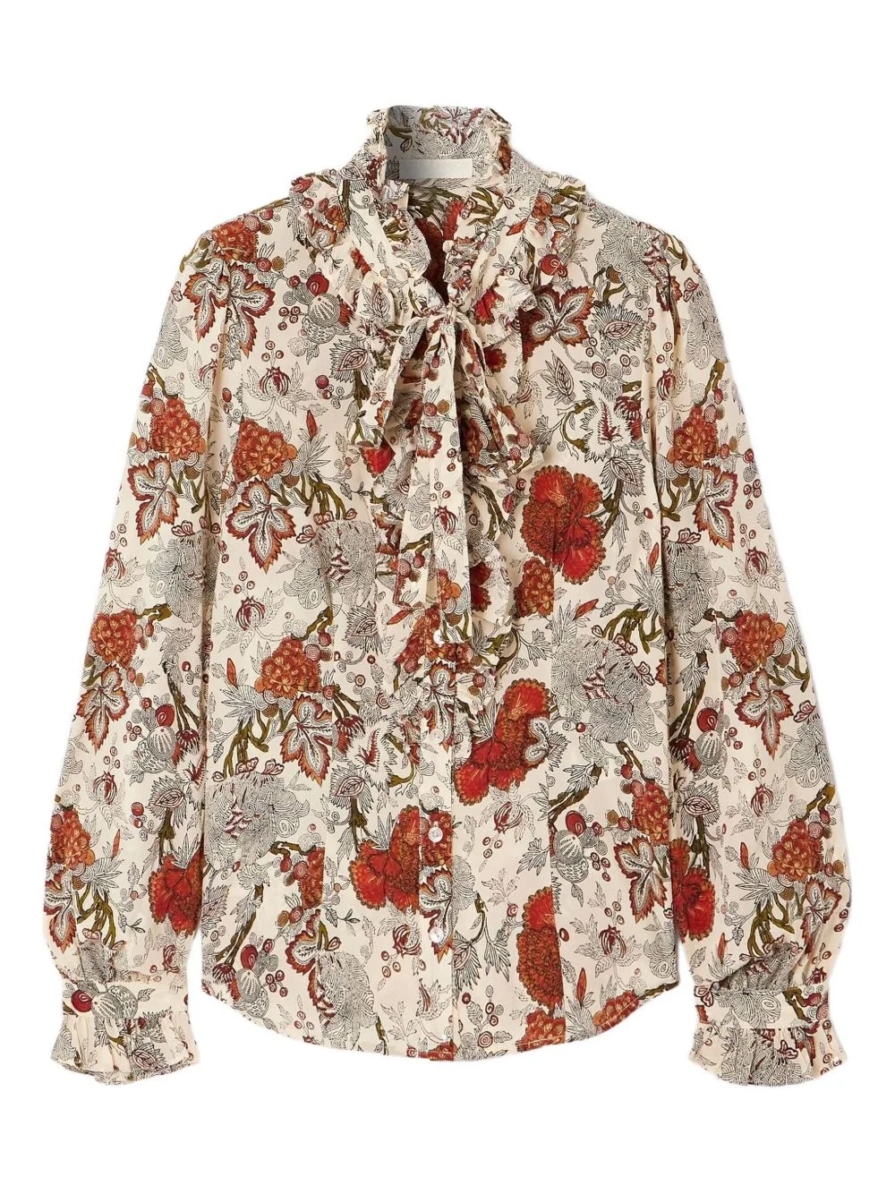 Catroux ruffled silk top Highlights - Beige and red - Floral print - Ruffled collar - Button fastening - Long sleeves - Ruffled cuffs Imported Composition Silk 100% Washing instructions Read Manufacturer Guidelines