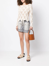 drawstring-waist shorts granite grey/blue cotton vertical stripe pattern elasticated drawstring waistband front button fastening two front patch pockets two rear patch pockets above-knee length Imported Composition Body: Cotton 100% SIZE & FIT Model measurements Height 5 ft 10 in(1.78 m) Bust/Chest 33.46 in(85 cm) Hips 35.43 in(90 cm) Waist 24.4 in(62 cm) FittingInformation This piece fits true to size. We recommend you get your regular size Designed to be fitted at the waist, loose over the leg Made with a mid-weight non-stretch fabric