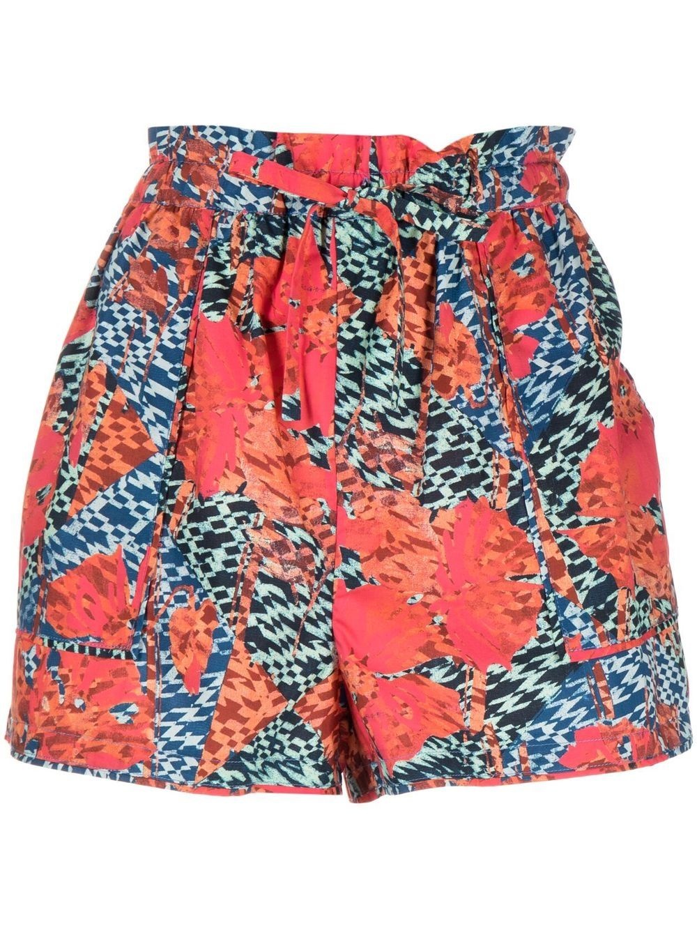 Edlyn high-waist mini shorts coral red/multicolour all-over graphic print high waist drawstring fastening waist pleat detailing Imported Composition Cotton 100% SIZE & FIT Model measurements Height 5 ft 10 in(1.78 m) Bust/Chest 33.46 in(85 cm) Hips 35.43 in(90 cm) Waist 24.4 in(62 cm) FittingInformation This piece fits true to size. We recommend you get your regular size Designed to be fitted at the waist, loose over the leg Made with a mid-weight non-stretch fabric