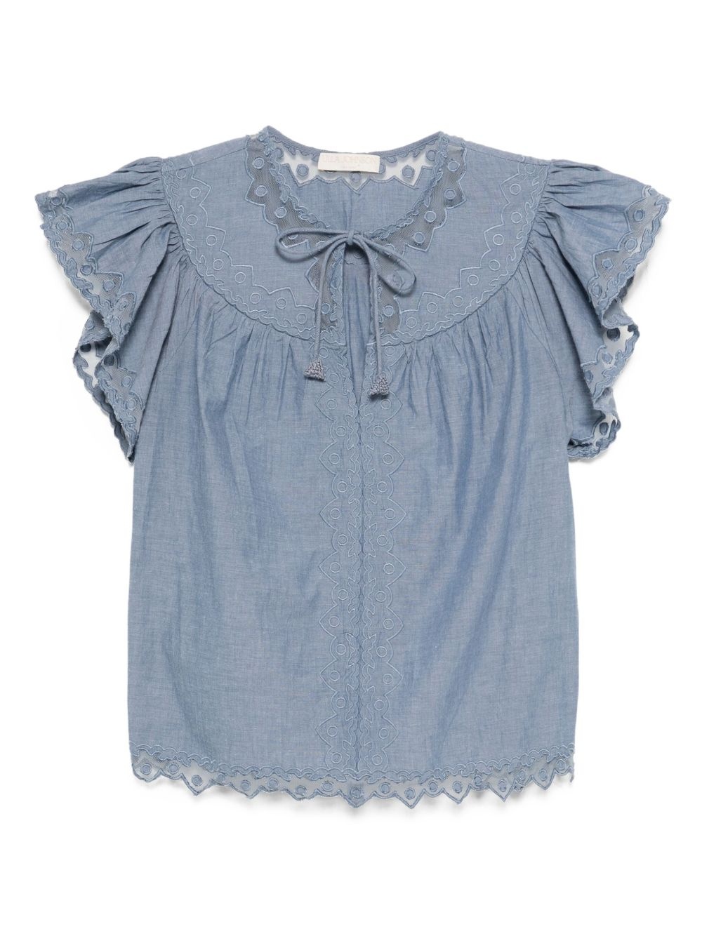 Effie top Highlights - Chambray - Front tie fastening - Crew neck - Short sleeves Imported Composition Cotton 100% SIZE & FIT Model measurements Height 5 ft 10 in(1.78 m) Bust/Chest 29.92 in(76 cm) Hips 34.64 in(88 cm) Waist 24.8 in(63 cm) FittingInformation Designed to be unstructured, offering a loose fit throughout Made from a midweight non-stretch fabric Washing instructions Dry Clean Only