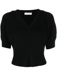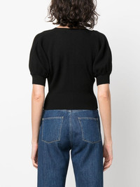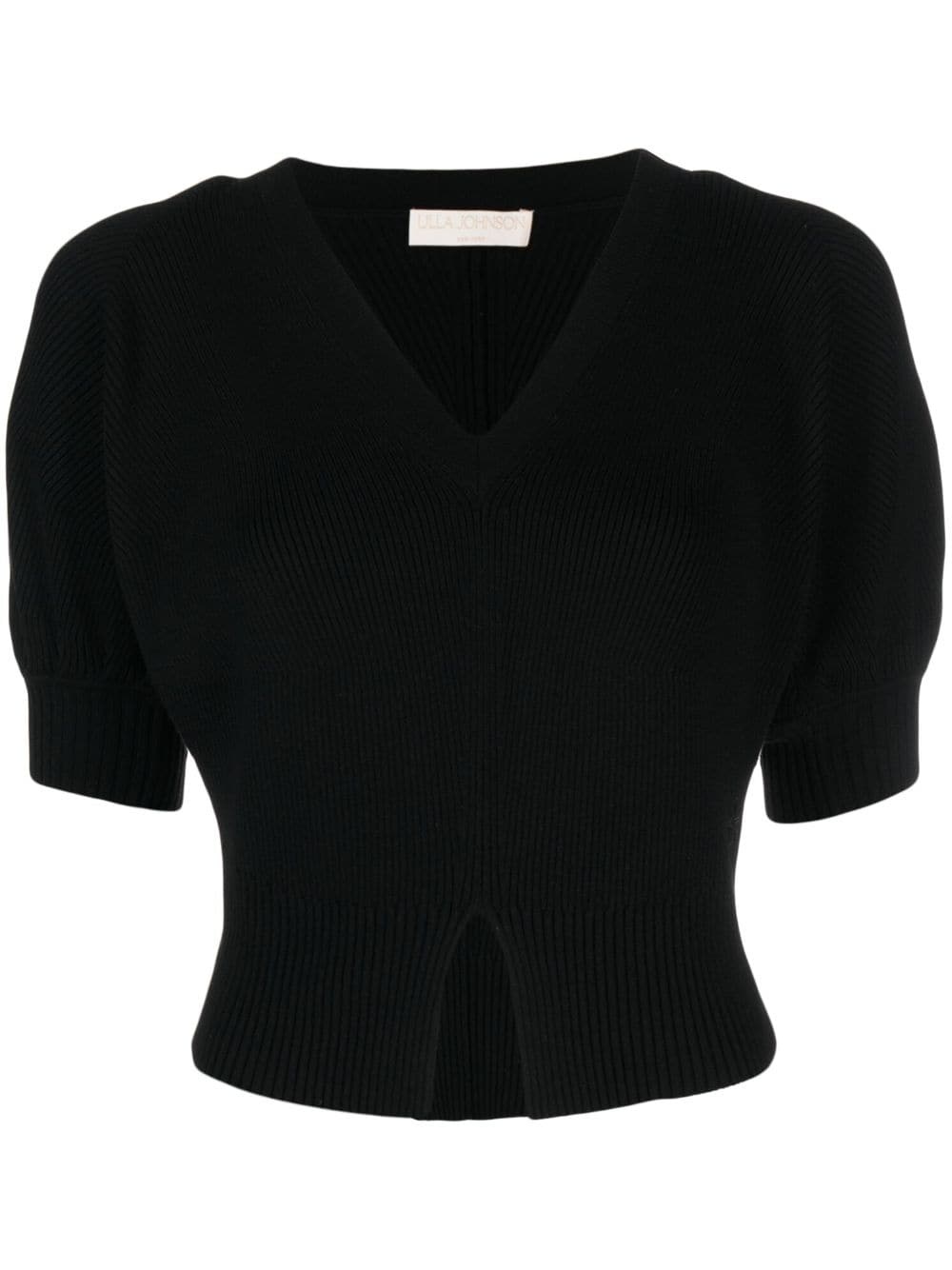Eila ribbed V-neck top Highlights - Black - Stretch-design - Fine ribbed - V-neck - Short puff sleeves - Front slit - Curved hem Imported Composition Nylon 41%, Viscose 31%, Wool 26%, Spandex/Elastane 2% SIZE & FIT Model measurements Height 5 ft 9 in(1.76 m) Bust/Chest 33.07 in(84 cm) Hips 34.64 in(88 cm) Waist 25.59 in(65 cm) FittingInformation Designed for a slim fit that sits just away from the body offering a close yet comfortable fit Made with a midweight knit, this piece offers some stretch This piece fits true to size – take your usual size