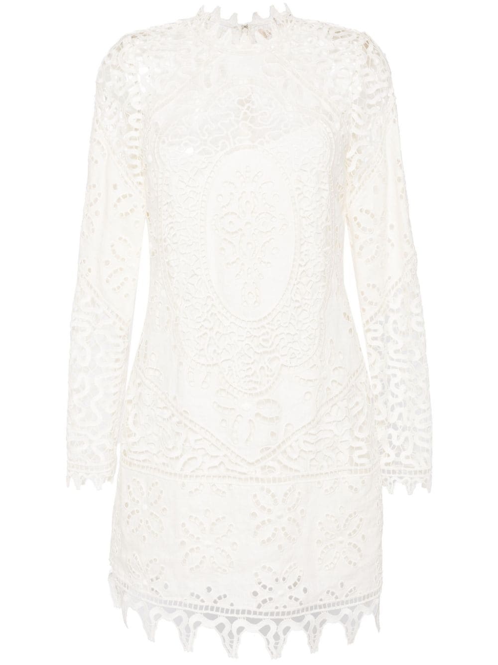 Eleni mini dress Highlights - White - Cotton/linen - Layered design - Perforated design - Semi-sheer construction - Crew neck - Long sleeves - Scallop hem - Above-knee length - Concealed rear zip fastening Imported Composition Lining: Cotton 100% Outer: Linen/Flax 100% SIZE & FIT Model measurements Height 5 ft 10 in(1.77 m) Bust/Chest 30.7 in(78 cm) Hips 35.03 in(89 cm) Waist 23.62 in(60 cm) FittingInformation Designed for a slim fit that sits just away from the body offering a close yet comfortable fit Made from a midweight non-stretch fabric This piece fits true to size – take your usual size
