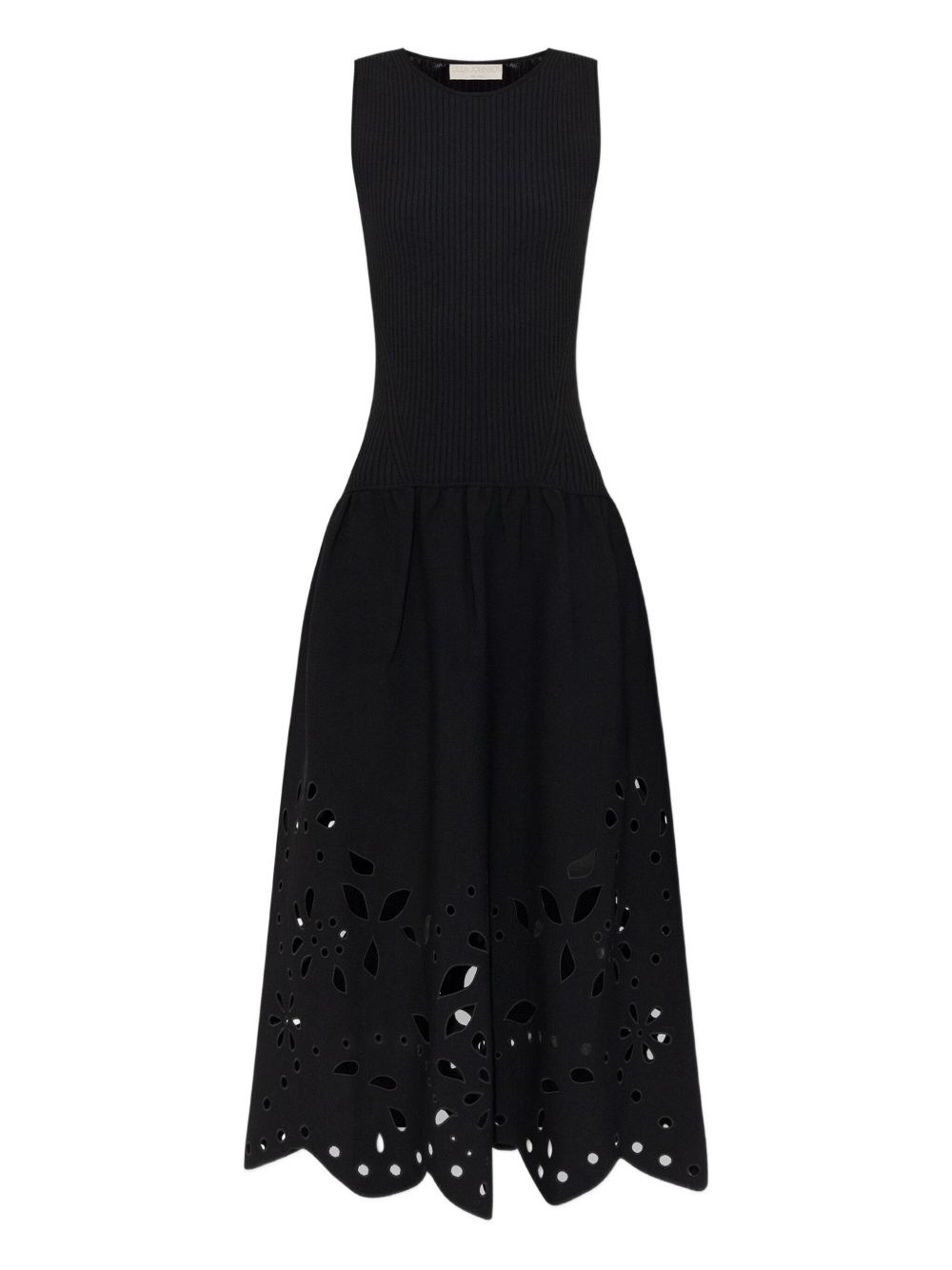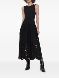 Rosaline ribbed-knit and broderie anglaise jersey midi dress Black