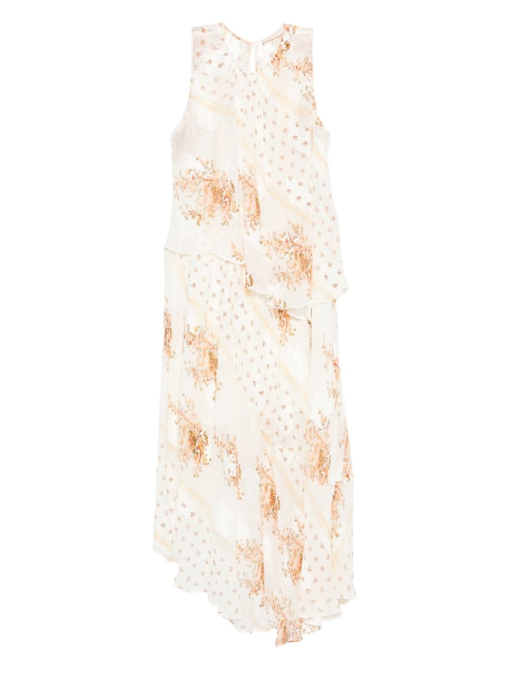 floral-print layered dress Highlights - White - Floral motif - Layered design - Sleeveless - Asymmetric hem - Rear eye and hook fastening Imported Composition Outer: Silk 64%, Viscose 36% Lining: Polyester 100% Washing instructions Dry Clean Only