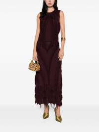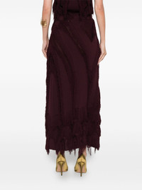 fringed panelled midi skirt Highlights - Burgundy - Layered fringe - V-shaped panels Imported Composition Viscose 65%, Nylon 35% SIZE & FIT Model measurements Height 5 ft 10 in(1.78 m) Bust/Chest 33.46 in(85 cm) Hips 36.22 in(92 cm) Waist 23.22 in(59 cm) Washing instructions Dry Clean Only