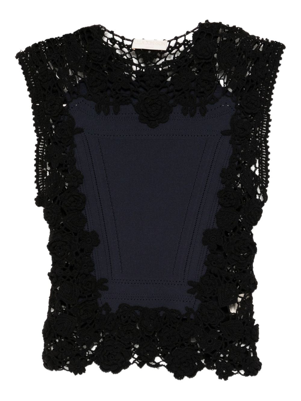 Gigi tank top Highlights - Navy blue - Lace detailing - Crew neck - Sleeveless Imported Composition Cotton 62%, Viscose 31%, Polyester 7% SIZE & FIT Model measurements Height 5 ft 9 in(1.76 m) Bust/Chest 31.1 in(79 cm) Hips 35.03 in(89 cm) Waist 24.4 in(62 cm) FittingInformation Designed for a close fit throughout Made with a heavyweight knit, this piece offers some stretch Washing instructions Dry Clean Only