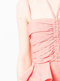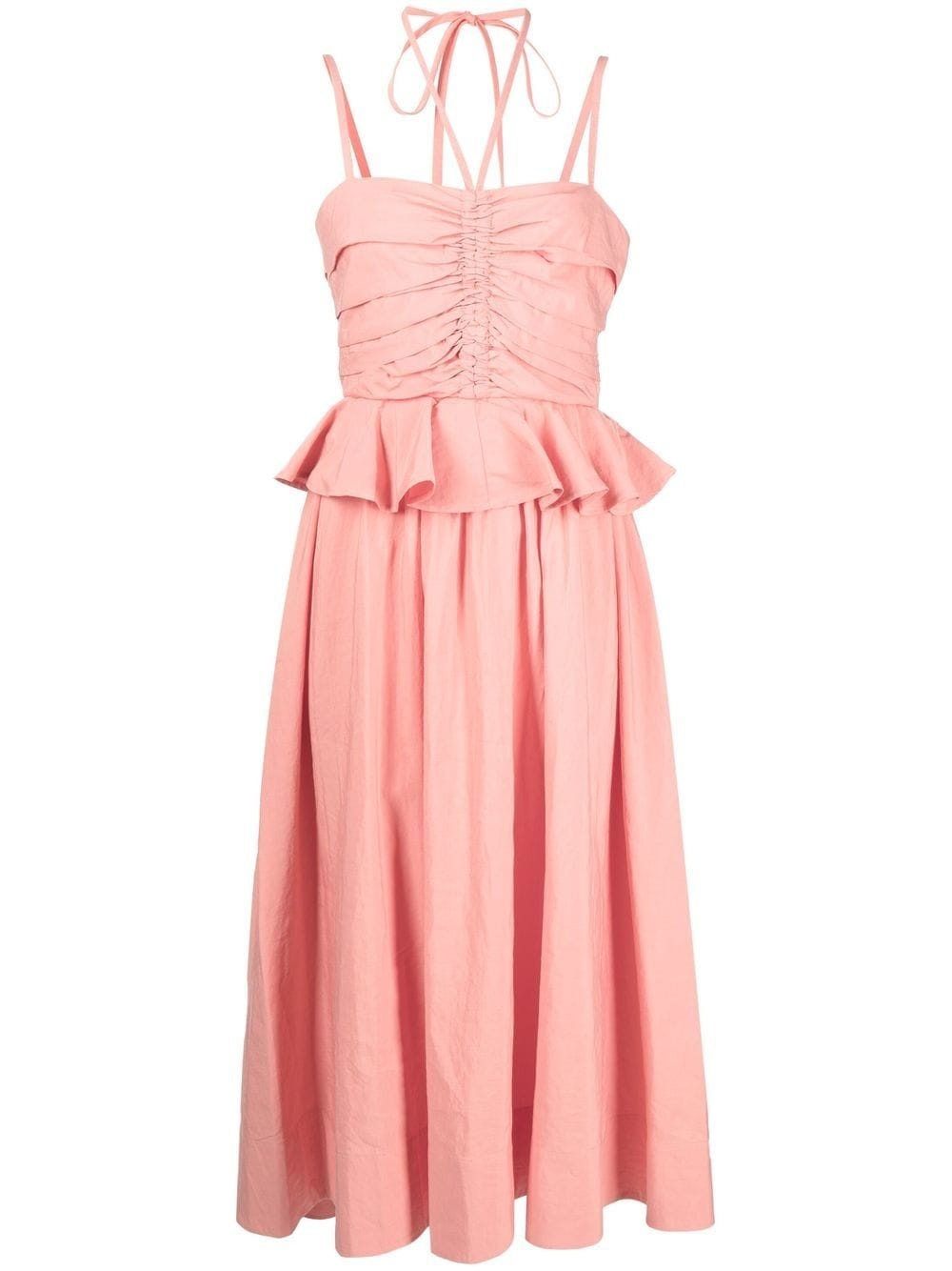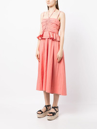 halterneck ruffled midi dress salmon pink linen blend ruffled detailing halterneck tie fastening concealed rear zip fastening spaghetti straps calf-length Imported Composition Outer: Cotton 53%, Linen/Flax 45% Silk 2% SIZE & FIT Model measurements Height 5 ft 11 in(1.8 m) Bust/Chest 28.34 in(72 cm) Hips 35.43 in(90 cm) Waist 23.62 in(60 cm) Washing instructions Machine Wash