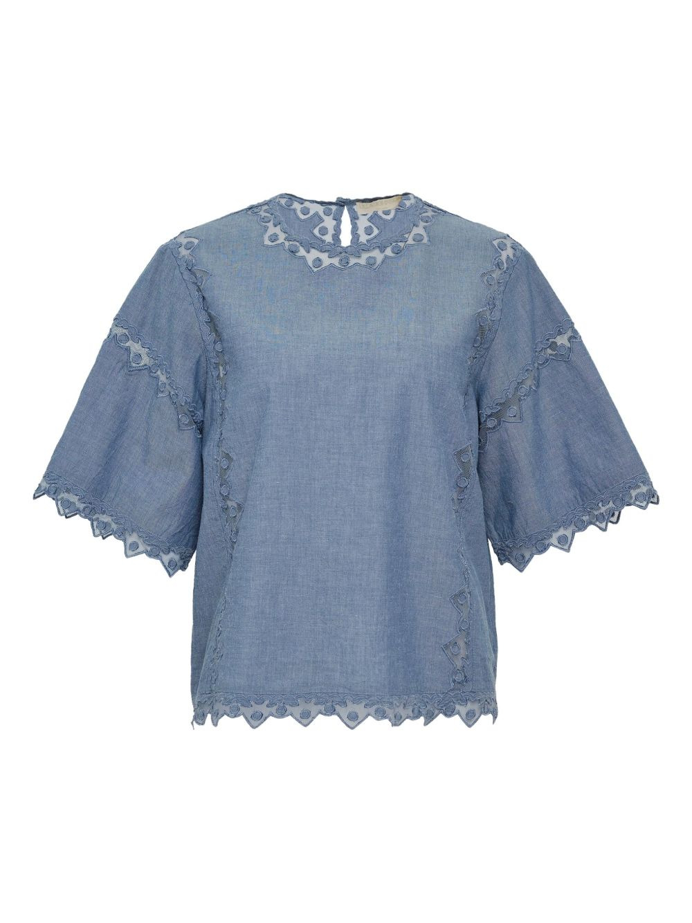Kai short-sleeve top Highlights - Blue - Scalloped hem - Short sleeves - Round neck - Embroidered details Imported Composition Cotton 100% Washing instructions Read Manufacturer Guidelines