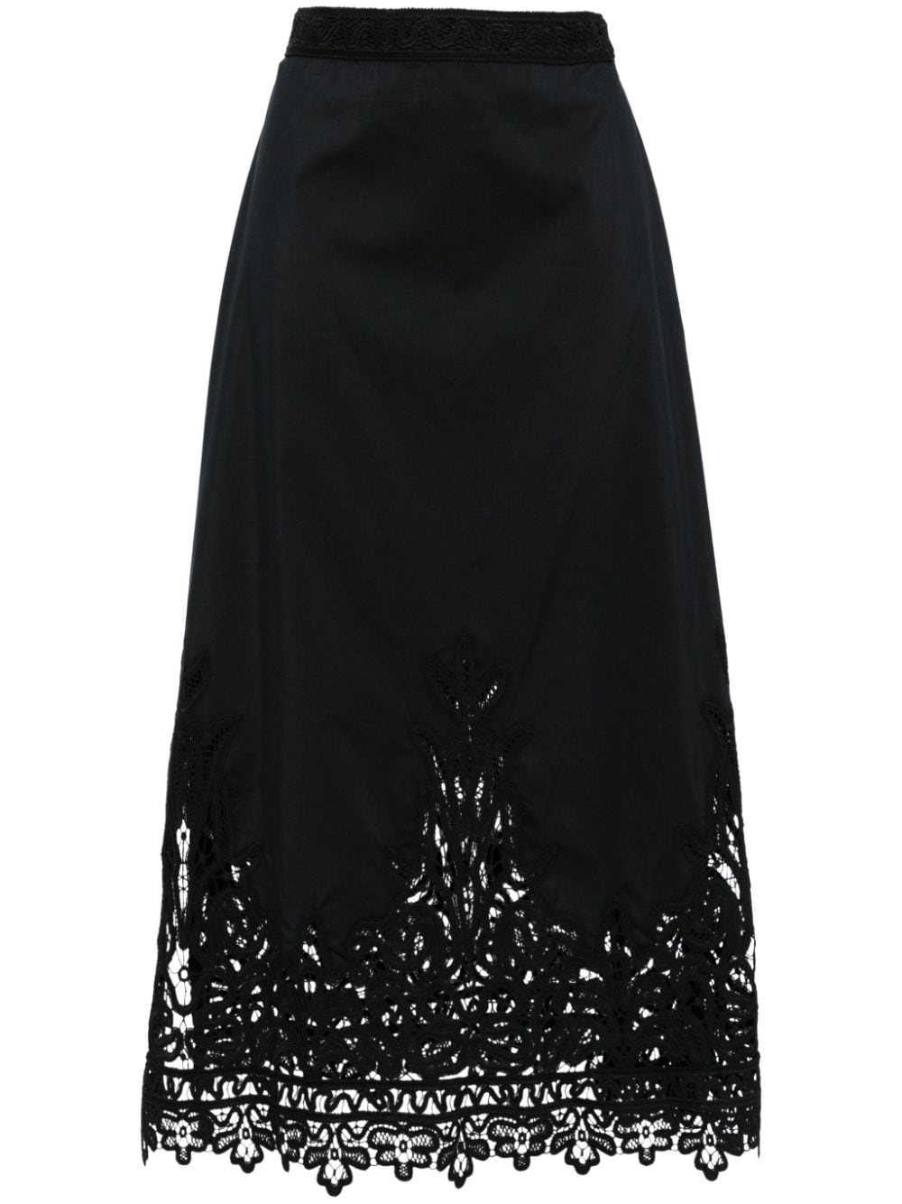 Karlyn skirt Highlights - Black - Cotton blend - Side zip fastening - Lace detailing - High fixed waistband - No pockets - Mid-length - A-line Imported Composition Trims: Polyester 100% Outer: Cotton 70%, Silk 30% SIZE & FIT Model measurements Height 5 ft 10 in(1.77 m) Bust/Chest 31.49 in(80 cm) Hips 35.43 in(90 cm) Waist 25.19 in(64 cm) FittingInformation This midi-length skirt is intended to be worn high on the waist Made from a midweight non-stretch fabric This piece fits large – take one size down