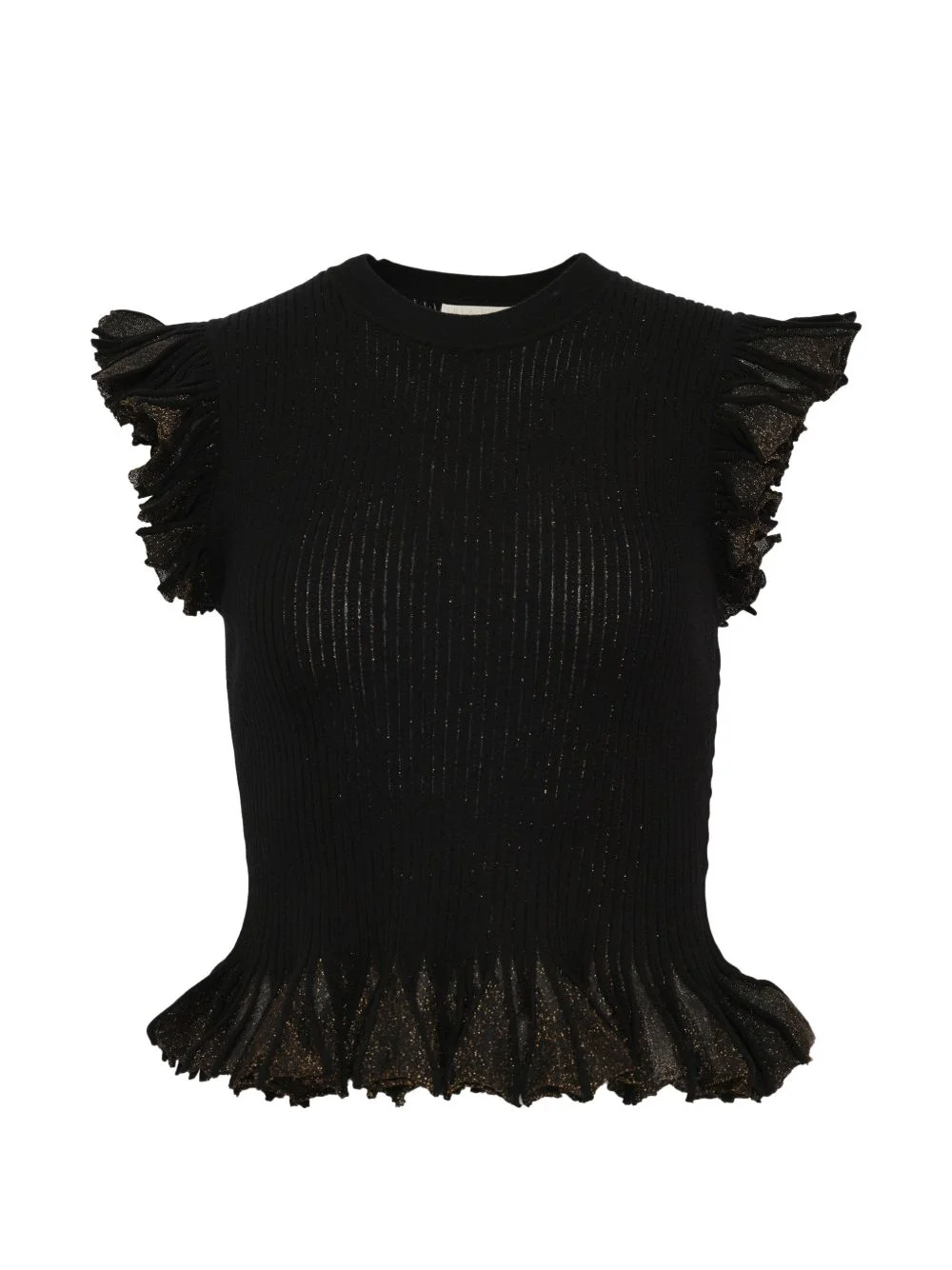 Leila sleeveless top Highlights - Black - Ruffled trim - Ribbed knit - Sleeveless Imported Composition Viscose 53%, Polyester 33%, Nylon 17% Washing instructions Machine Wash