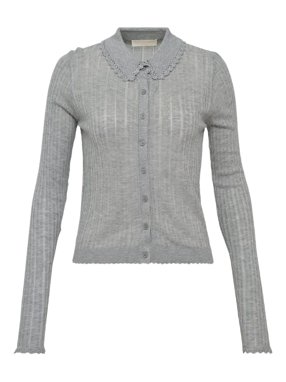 Lottie crochet-trimmed pointelle-knit cardigan Gray