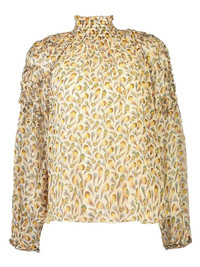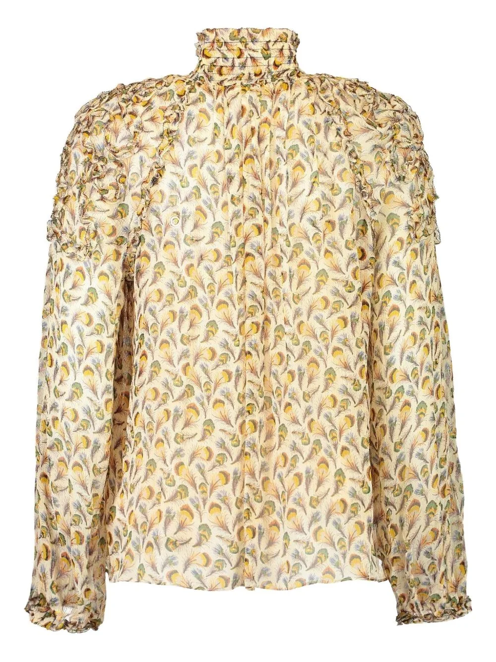 Magdalena ruffled feather-print blouse Highlights - Light beige - Feather print - High neck - Ruffled shoulders - Long sleeves - Ruffled cuffs Imported Composition Silk 100% Washing instructions Read Manufacturer Guidelines