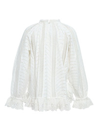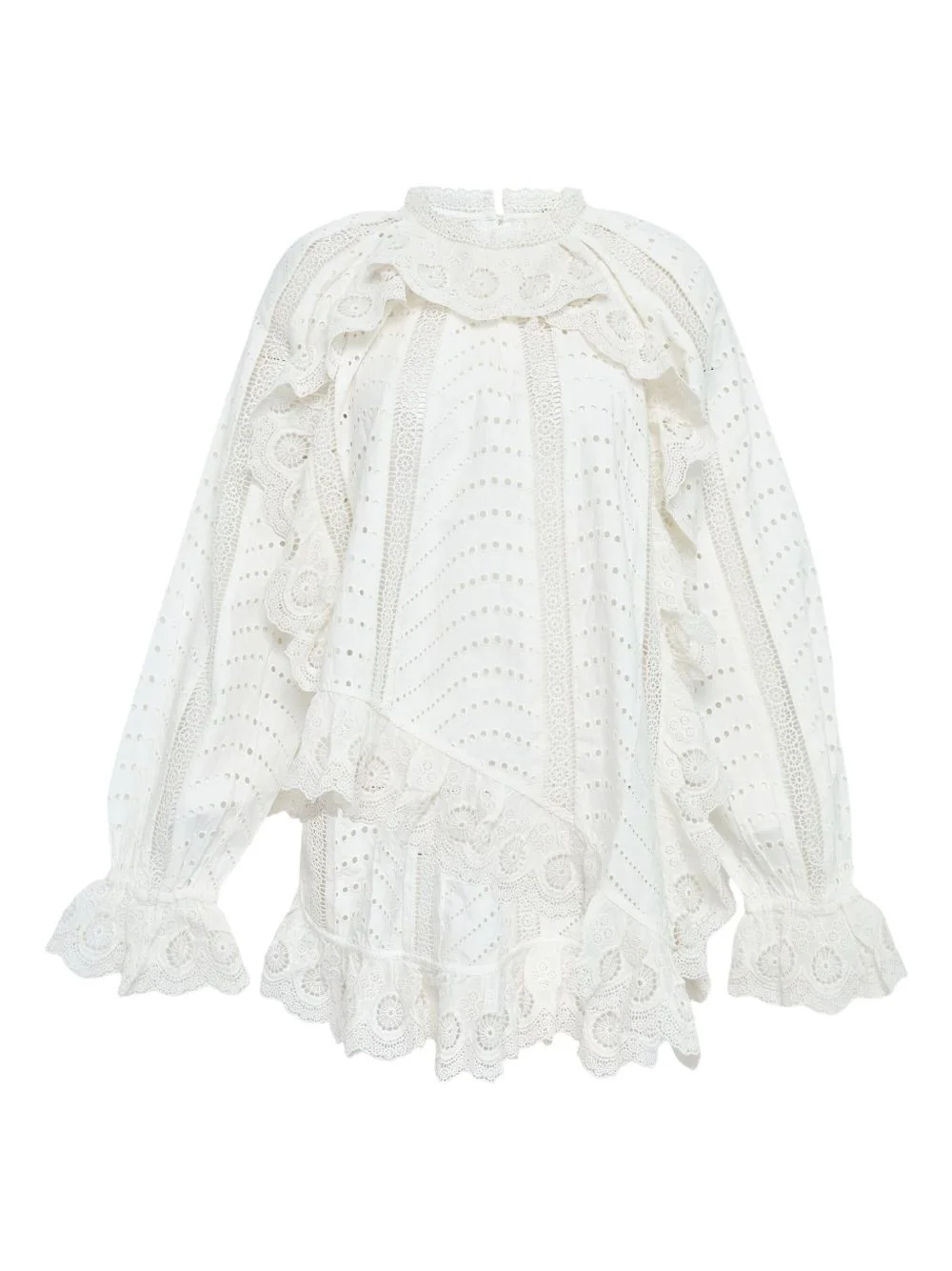 Marcella asymmetrical long-sleeve blouse Highlights - White - Lace trims - Long sleeve - Scalloped ruffles - Asymmetric hem Imported Composition Cotton 100%, Polyester 100% Washing instructions Read Manufacturer Guidelines