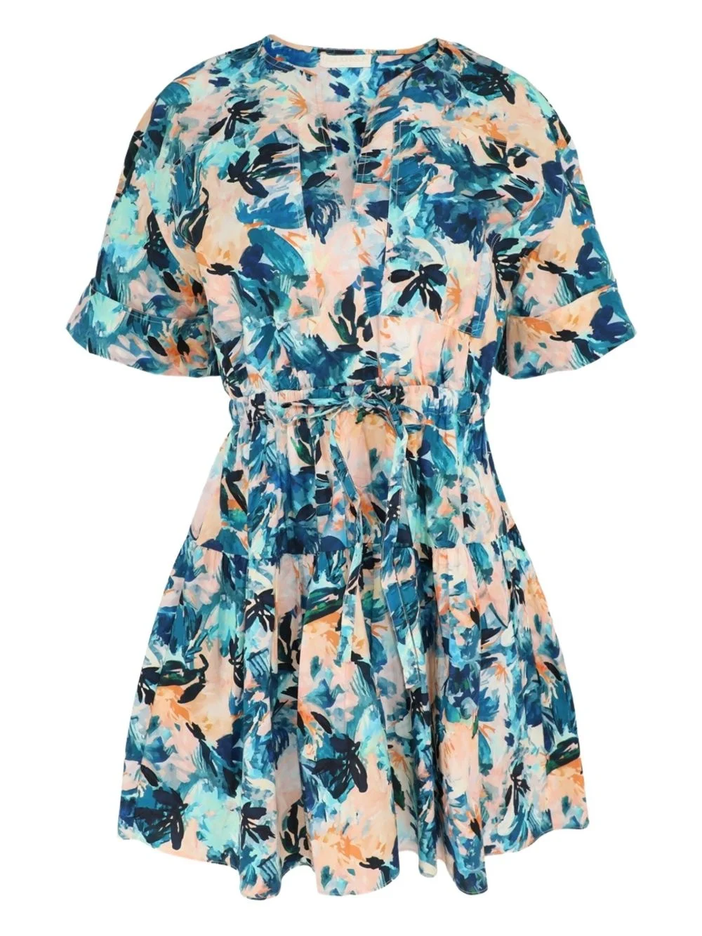 Nadira mini dress Highlights - Powder blue - Front tie fastening - V-neck - Short sleeves - Flared hem Imported Composition Cotton 100% SIZE & FIT FittingInformation Designed to be unstructured, offering a loose fit throughout The elasticated waist allows for a comfortable fit Made from a lightweight non-stretch fabric