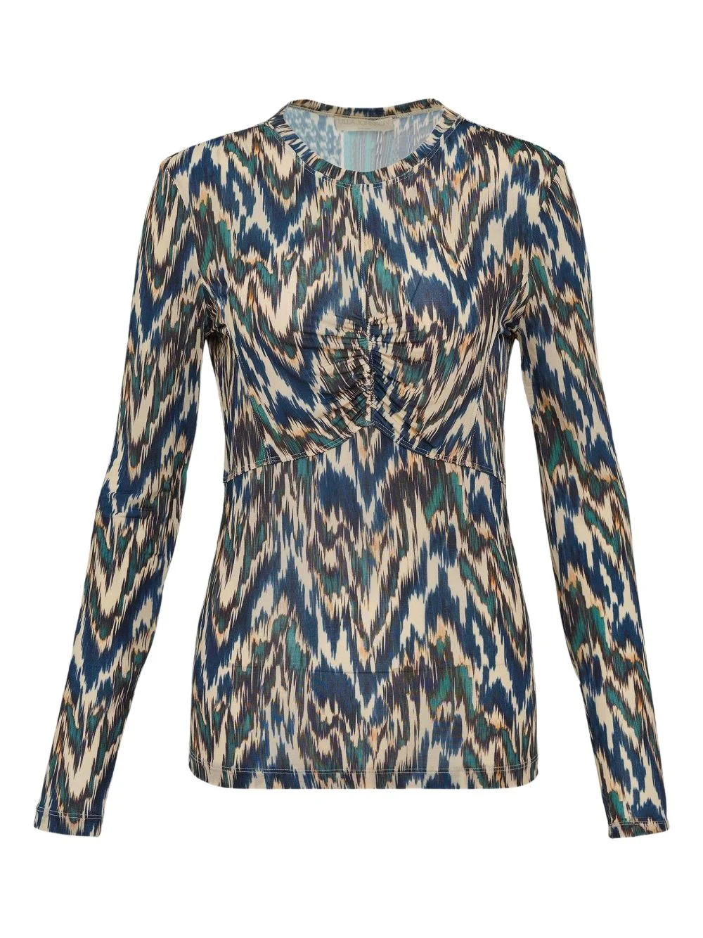 Neri long-sleeves top Highlights - Blue and multicolour - Patterned - Long sleeve - Ruched detail - Round neck Imported Composition Rayon 91%, Elastane 9% Washing instructions Read Manufacturer Guidelines