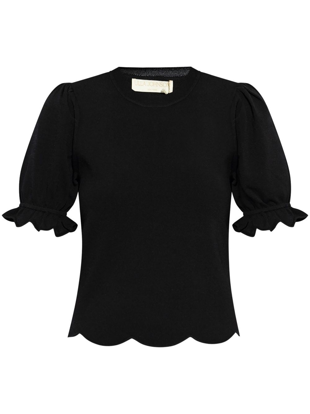Noemi top Highlights - Black - Elasticated cuffs - Short puff sleeves - Scallop edge Imported Composition Viscose 71%, Polyester 29%