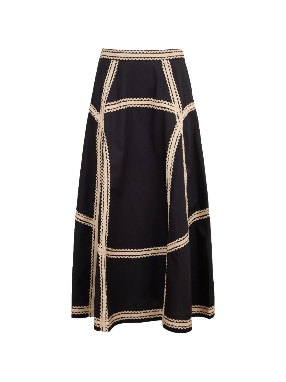 Norah A-line trim midi skirt Highlights - Black - A-line - Trim detail - Midi length Imported Composition Cotton 100%, Rayon 100% Washing instructions Dry Clean Only