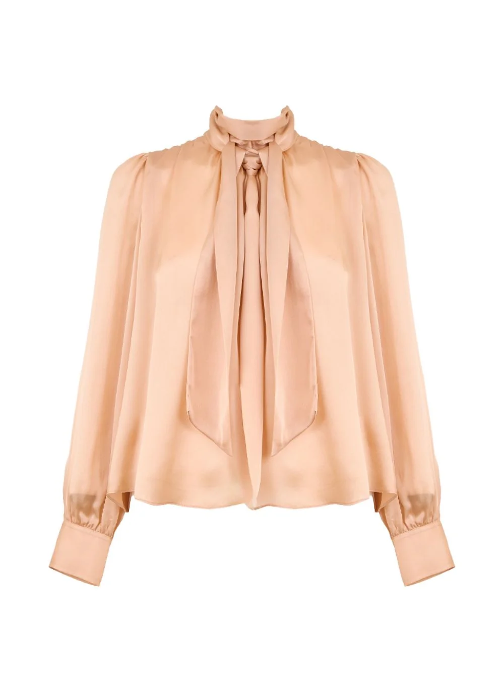 Ornament tie-neck blouse Highlights - Beige - Tie detail - Buttoned cuffs - Long sleeves - Keyhole back - High neck Imported Composition Silk 100% Washing instructions Dry Clean Only