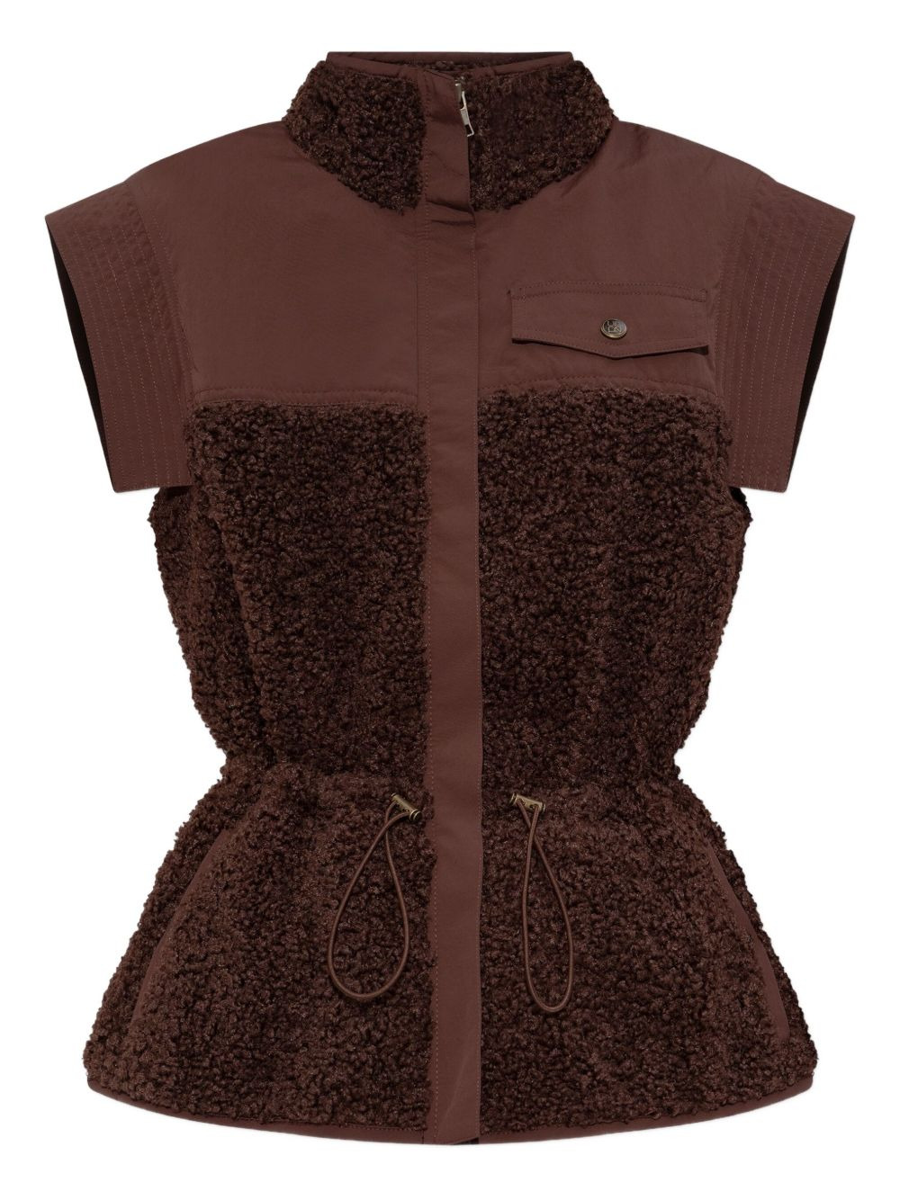 panelled fleece waistcoat Highlights - Brown - Fleece texture - Zip fastening - Turtleneck - Sleeveless - Drawstring hem - Embroidered logo patch Imported Composition Nylon 100%, Polyester 100% Washing instructions Read Manufacturer Guidelines