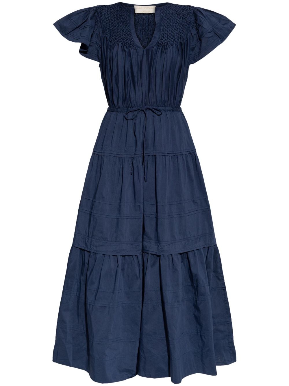 pleated midi dress Highlights - Midnight blue - Fitted waistline - Short sleeves - Fully pleated - Mid-length Imported Composition Outer: Cotton 73%, Silk 27% Lining: Cotton 100% SIZE & FIT FittingInformation Designed to be unstructured, offering a loose fit throughout The adjustable drawstring means that you can adjust this piece’s fit to suit your comfort and preference Made from a midweight non-stretch fabric