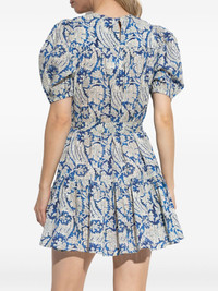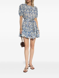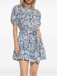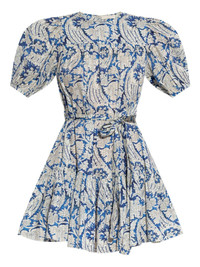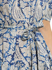 Rosalie dress Highlights - Blue/white - Floral-print - Flared skirt - Short puff sleeves - Detachable and adjustable waist belt Imported Composition Cotton 66%, Viscose 34% Washing instructions Read Manufacturer Guidelines