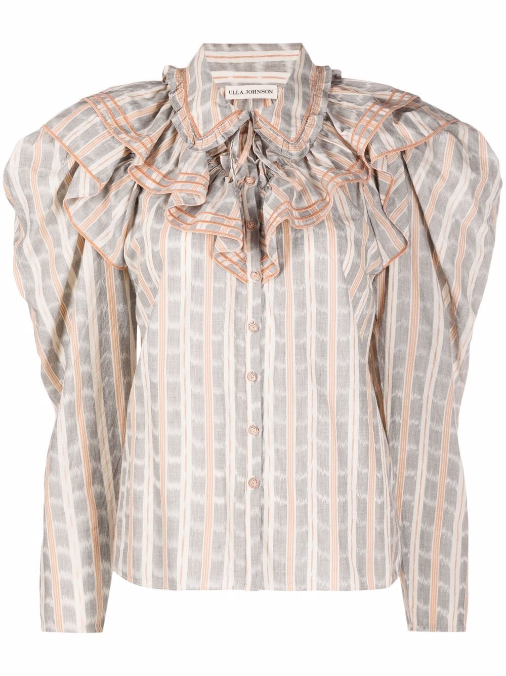 ruffled-neck check pattern blouse tonal neutrals cotton ruffled detailing classic collar long sleeves front button fastening curved hem Imported Composition Cotton 100% SIZE & FIT Model measurements Height 5 ft 9 in(1.75 m) Bust/Chest 28.74 in(73 cm) Hips 33.46 in(85 cm) Waist 23.22 in(59 cm) FittingInformation This piece fits true to size. We recommend you get your regular size Cut for a loose fit Made with a mid-weight fabric