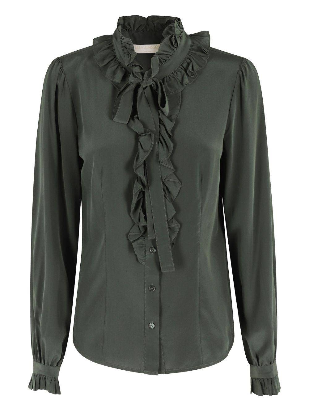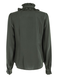 ruffled silk blouse Highlights - Dark green - High neck - Ruffled detailing - Front button fastening - Long sleeves - Ruffled cuffs Imported Composition Silk 100% Washing instructions Read Manufacturer Guidelines