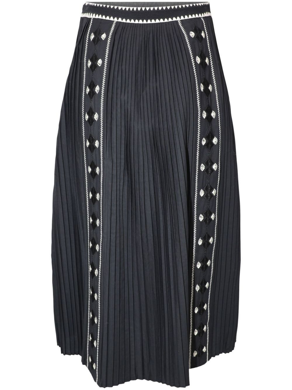 Sabina pleated embroidered midi skirt