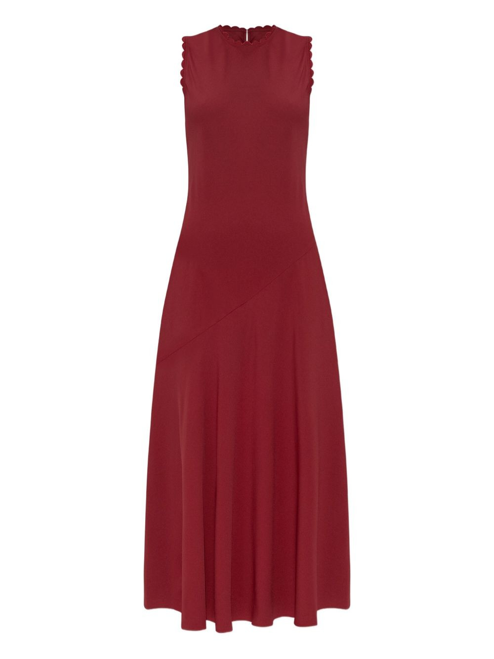 scallop-trim midi dress Highlights - Red - Scallop trim - Sleeveless - A-line skirt - Crew neck - Midi length Imported Composition Viscose 100% Washing instructions Read Manufacturer Guidelines