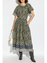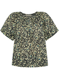 Sena blouse Highlights - Dark green - Front tie fastening - All-over floral print - Keyhole neck - Short puff sleeves Imported Composition Outer: Cotton 100%
