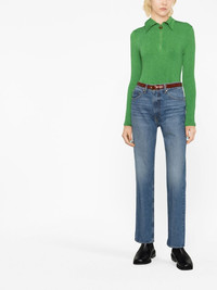 straight-leg cut jeans medium blue cotton straight-leg belt loops front button and zip fastening classic five pockets Made in United States Composition Cotton 100% SIZE & FIT Model measurements Height 5 ft 9 in(1.75 m) Bust/Chest 31.88 in(81 cm) Hips 33.85 in(86 cm) Waist 24.01 in(61 cm) FittingInformation This piece fits true to size. We recommend you get your regular size Cut for a slim fit Made with a mid-weight non-stretch fabric Washing instructions Machine Wash