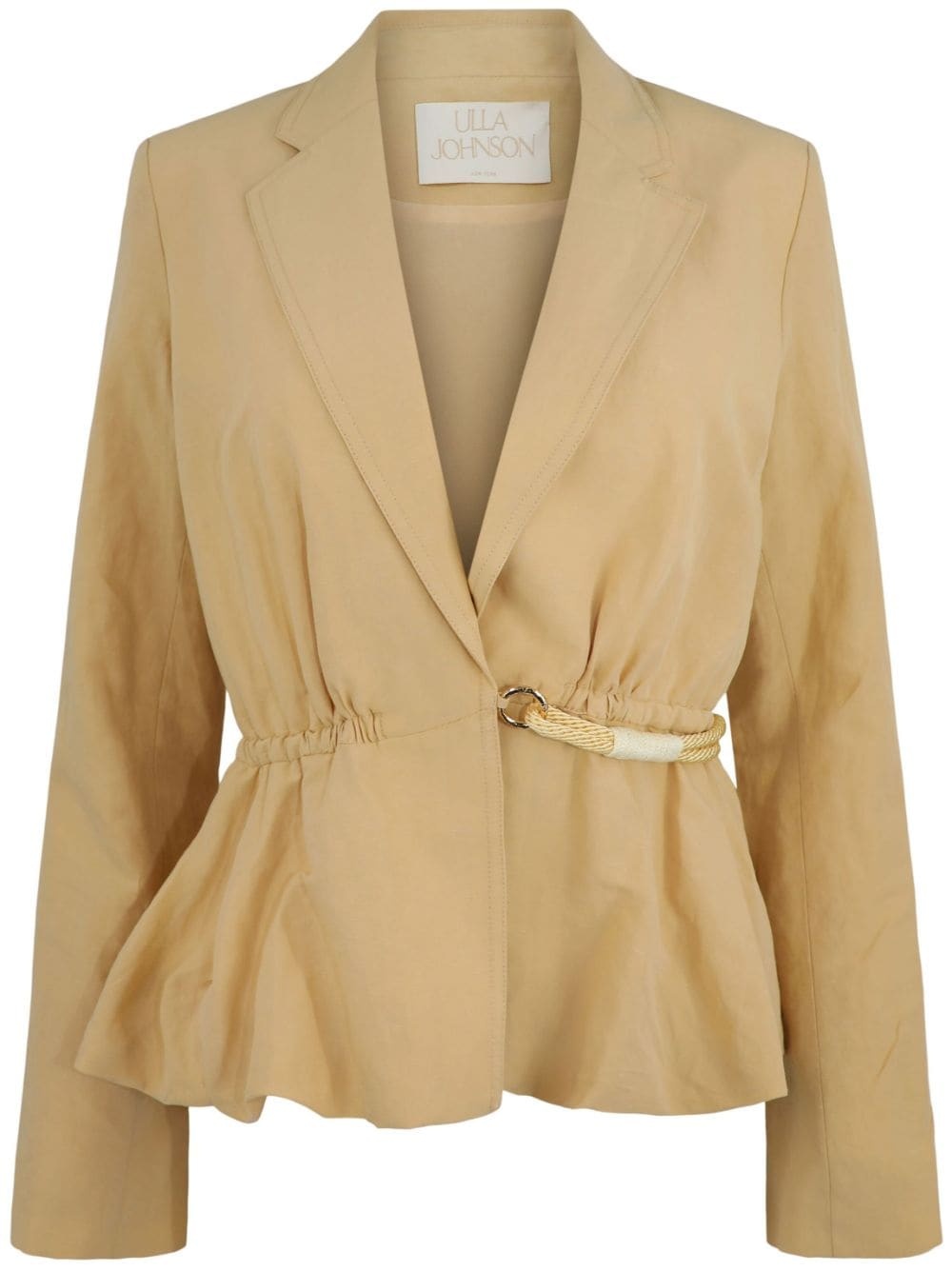 Talie belted blazer Highlights - Mustard yellow - Cotton-linen blend - Slub texture - Shoulder pads - Rope detailing - Belted and peplum waist - Notched lapels - Ring fastening - Internal drawstring fastening waist - Long sleeves - Straight hem Imported Composition Cotton 53%, Linen/Flax 45%, Silk 2% SIZE & FIT Measurement BUST 34.64 in(88 cm) LENGTH 23.22 in(59 cm) WAIST 25.98 in(66 cm) SLEEVE LENGTH 18.89 in(48 cm) Shoulder Width 15.35 in(39 cm) FittingInformation Designed for a close fit at the chest and waist with a loose fit at the hip The internal shoulder pads offer a structured shape Made from a midweight non-stretch fabric Washing instructions Read Manufacturer Guidelines