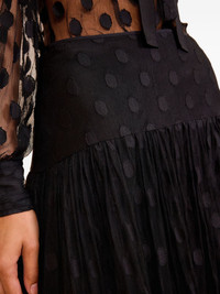 Vera ruffled maxi skirt Highlights - Black - Floral pattern - Ruffled detailing - Tiered design - Pleated section - Semi-sheer finish Imported Composition Outer: Polyamide 60%, Cotton 40% Washing instructions Hand Wash