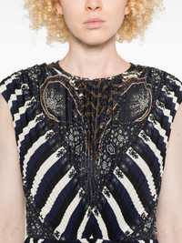 Violeta multi-pattern pleated dress Highlights - Blue - Multi pattern - Pleated skirt - Sleeveless - Round neck - Zip fastening Imported Composition Polyester 100% SIZE & FIT Model measurements Height 5 ft 9 in(1.75 m) Bust/Chest 34.64 in(88 cm) Hips 36.61 in(93 cm) Waist 26.37 in(67 cm) Washing instructions Dry Clean Only