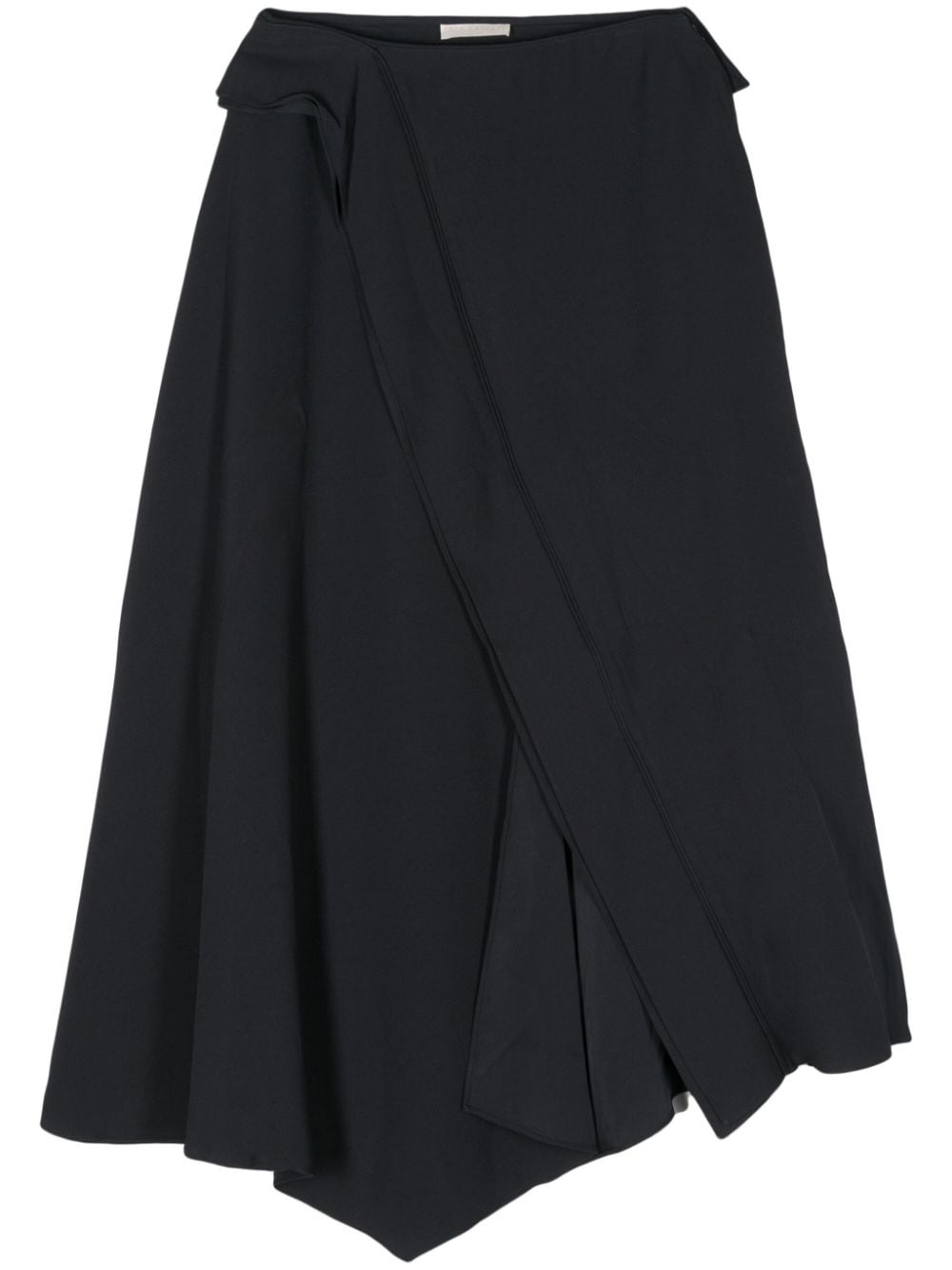 Violette draped midi skirt Highlights - Midnight blue - Crepe texture - Ruffled and draped design - Seam detailing at the front - Front slit - Asymmetric hem - Concealed side zip fastening Imported Composition Viscose 100% SIZE & FIT FittingInformation Designed with an asymmetric hem, this skirt is intended to be worn high on the waist Made from a midweight non-stretch fabric This piece fits true to size – take your usual size Washing instructions Dry Clean Only