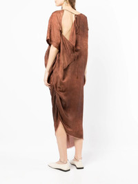 asymmetric shift dress dark rose asymmetric design V-neck rear tie fastening ruched detailing asymmetric hem Made in Italy Composition Viscose 61%, Silk 39% SIZE & FIT Model measurements Height 5 ft 11 in(1.8 m) Bust/Chest 28.34 in(72 cm) Hips 35.43 in(90 cm) Waist 23.62 in(60 cm) FittingInformation This piece fits true to size. We recommend you get your regular size Cut for a loose fit Made with a lightweight non-stretch fabric Washing instructions Hand Wash