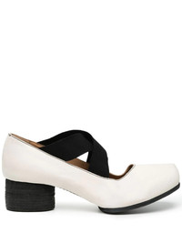 Ballerina square toe elasticated pumps Uma Wang's pumps are reminiscent of ballet styles with a square toe design and crossover elasticated straps. From the Japanese label's SS22 collection, this iteration of the pair is presented in a fresh white hue with contrasting black straps. Made in Italy Composition Calf Leather 100% SIZE & FIT Measurement HEEL 1.57 in(4 cm) HEIGHT 4.13 in(10.5 cm) WIDTH 3.34 in(8.5 cm)