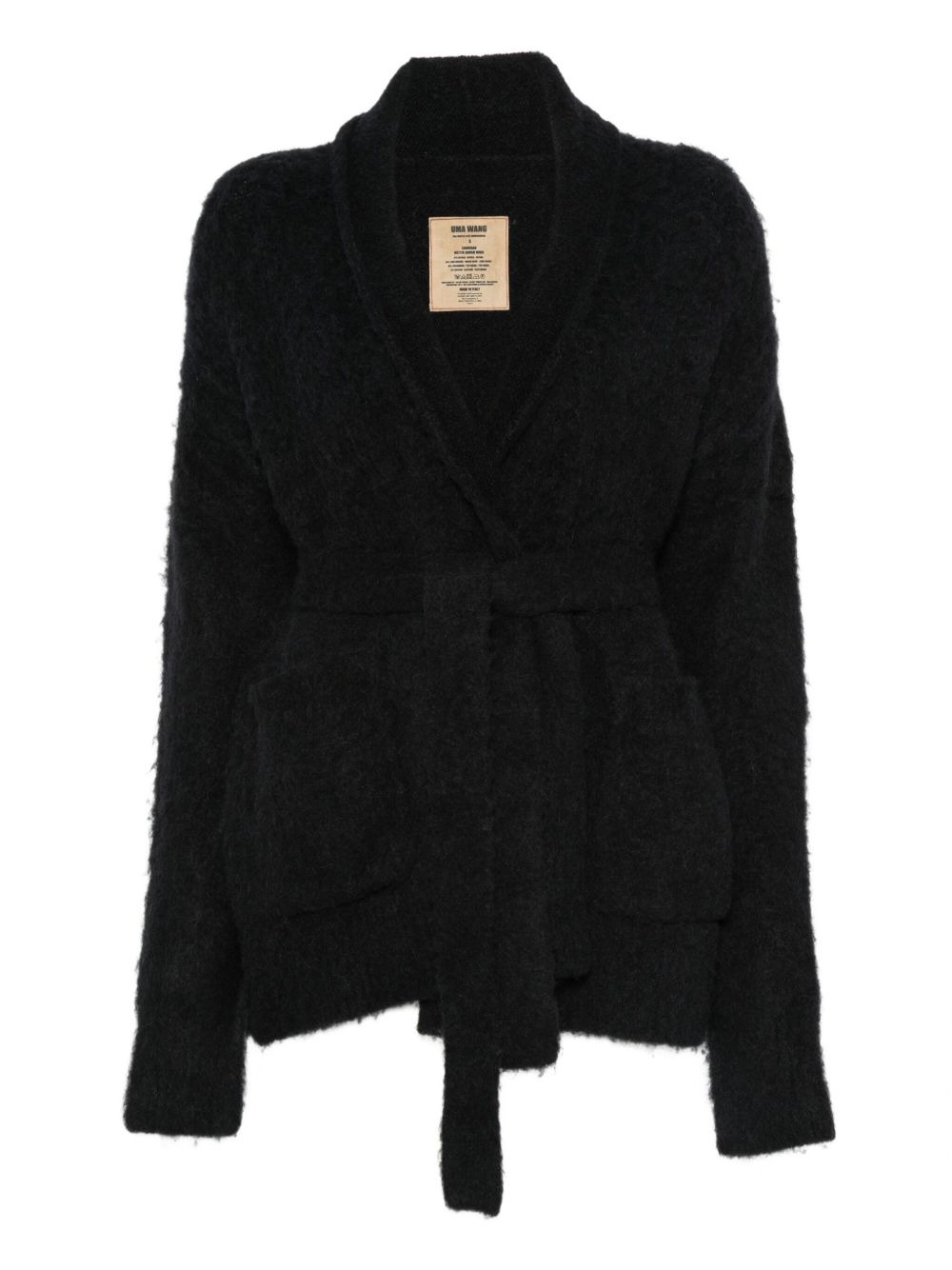 belted cardigan Highlights - Black - Self-tie belt - Patch pockets - Long sleeves Made in Italy Composition Alpaca Wool 51%, Virgin Wool 28%, Polyamide 18%, Elastane 3% Washing instructions Hand Wash
