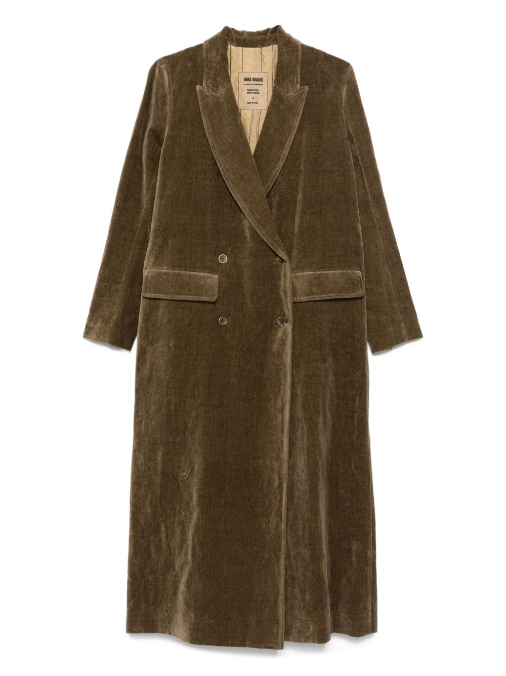 Camelot double-breasted corduroy coat Highlights - Brown - Corduroy texture - Double-breasted fastening - Peak lapels - Flap pockets - Long sleeves Made in Italy Composition Outer: Cotton 55%, Linen/Flax 45% Lining: Viscose 50%, Cupro 50% SIZE & FIT Model measurements Height 5 ft 9 in(1.75 m) Bust/Chest 32.67 in(83 cm) Hips 36.22 in(92 cm) Waist 24.8 in(63 cm) Washing instructions Hand Wash