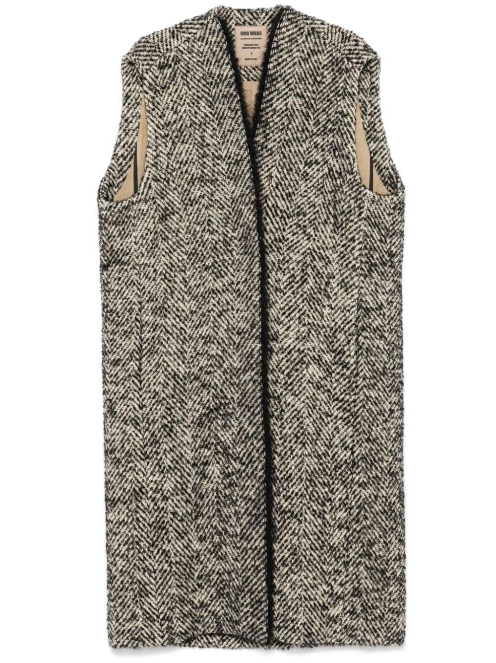 Cinnamon coat Highlights - Black/white - Chunky ribbed knit - Brushed finish - Concealed front press-stud fastening - Fringed edge - Plunging v-neck - Sleeveless - Two side inset pockets - Straight hem - Mid-length Made in Italy Composition Outer: Virgin Wool 48%, Mohair 32%, Polyamide 15%, Wool 4% Lining: Cotton 100% SIZE & FIT Model measurements Height 5 ft 10 in(1.78 m) Bust/Chest 33.85 in(86 cm) Hips 36.61 in(93 cm) Waist 26.77 in(68 cm) FittingInformation Designed for a boxy fit, intended for a loose fit throughout Made from a midweight non-stretch fabric