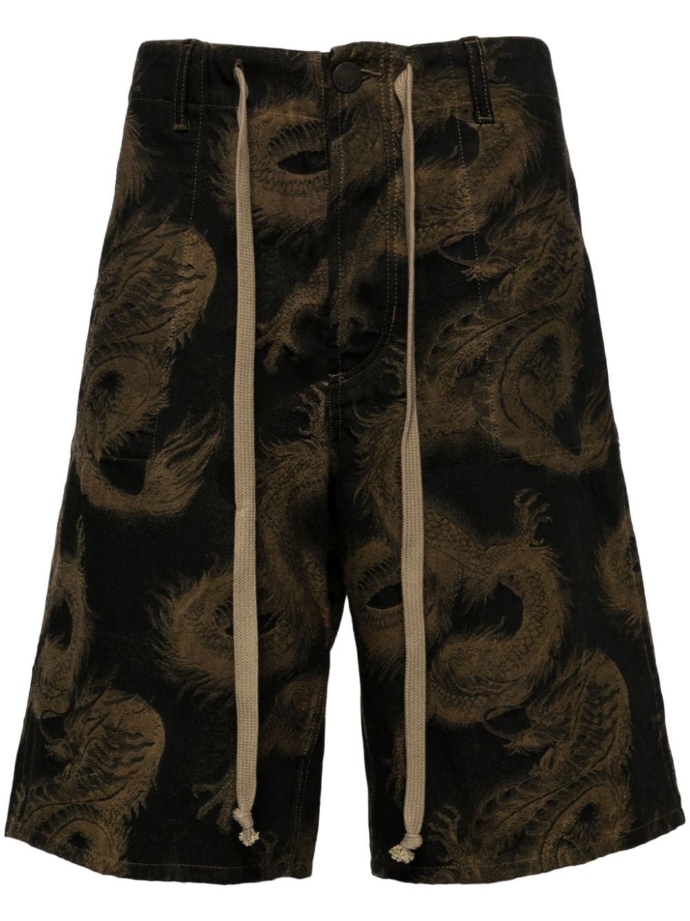 cotton bermuda shorts Highlights - Brown/black - Cotton - Dragon print - Drawstring waist - Front button and zip fastening - Belt loops - Two side inset pockets - Two rear button-fastening pockets - Straight hem Made in Italy Composition Cotton 100% SIZE & FIT Model measurements Height 6 ft 2 in(1.88 m) Bust/Chest 34.25 in(87 cm) Hips 34.64 in(88 cm) Waist 26.77 in(68 cm) FittingInformation Designed for a straight-leg, allowing for an unrestricted and comfortable fit over the leg Adjust this piece’s waistband to your preference using the drawstring Made from a midweight non-stretch fabric