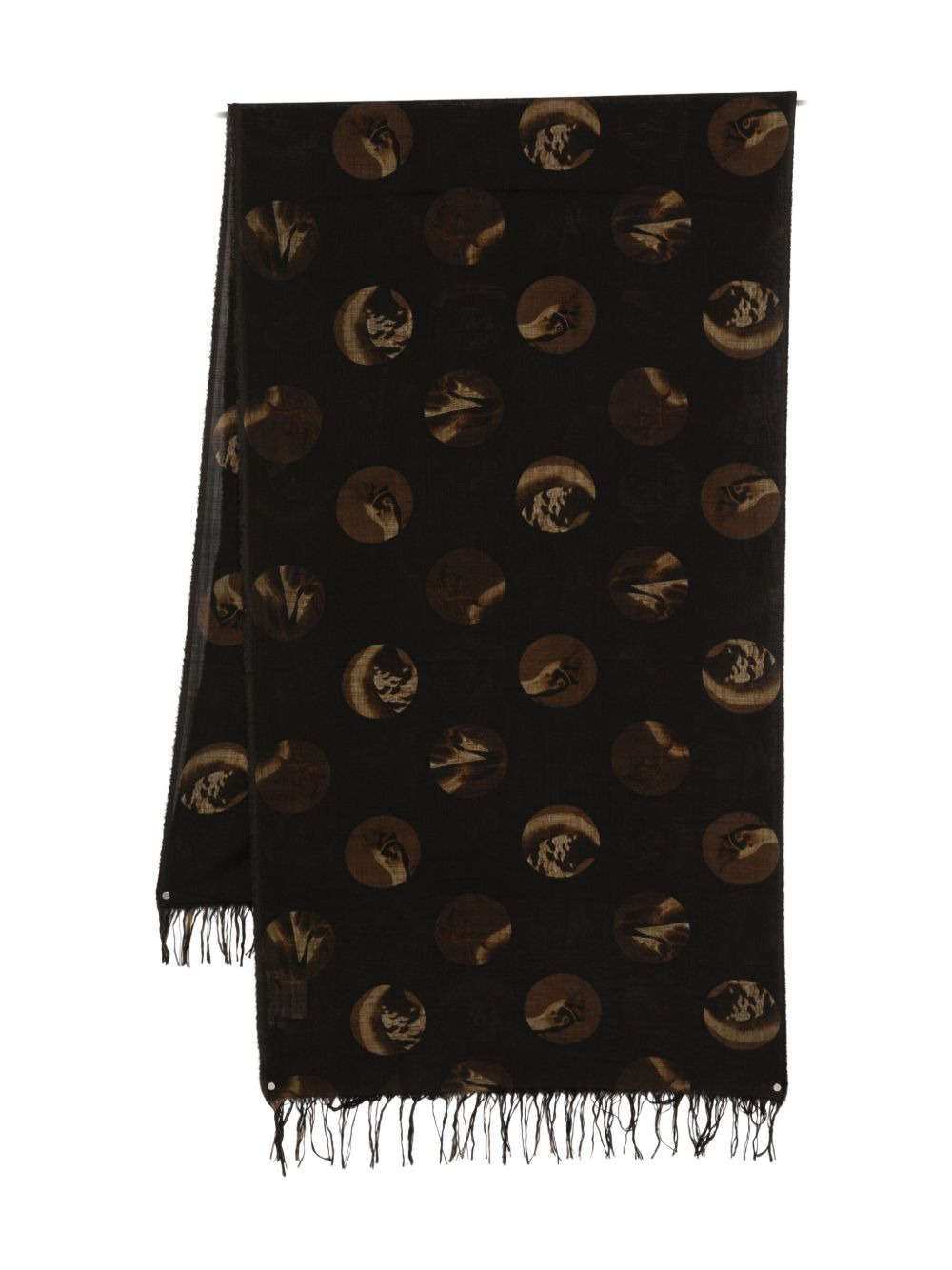 distressed-detail scarf Highlights - Black - Patterned - Fringed border - Distressed detail Made in Italy Composition Virgin Wool 100% SIZE & FIT Measurement LENGTH 92.12 in(234 cm) WIDTH 55.11 in(140 cm) Washing instructions Hand Wash