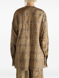 draped checked top Highlights - Brown - Checked pattern - Draped design - Long sleeves - Frayed edges Made in Italy Composition Virgin Wool 55%, Viscose 45% Washing instructions Read Manufacturer Guidelines