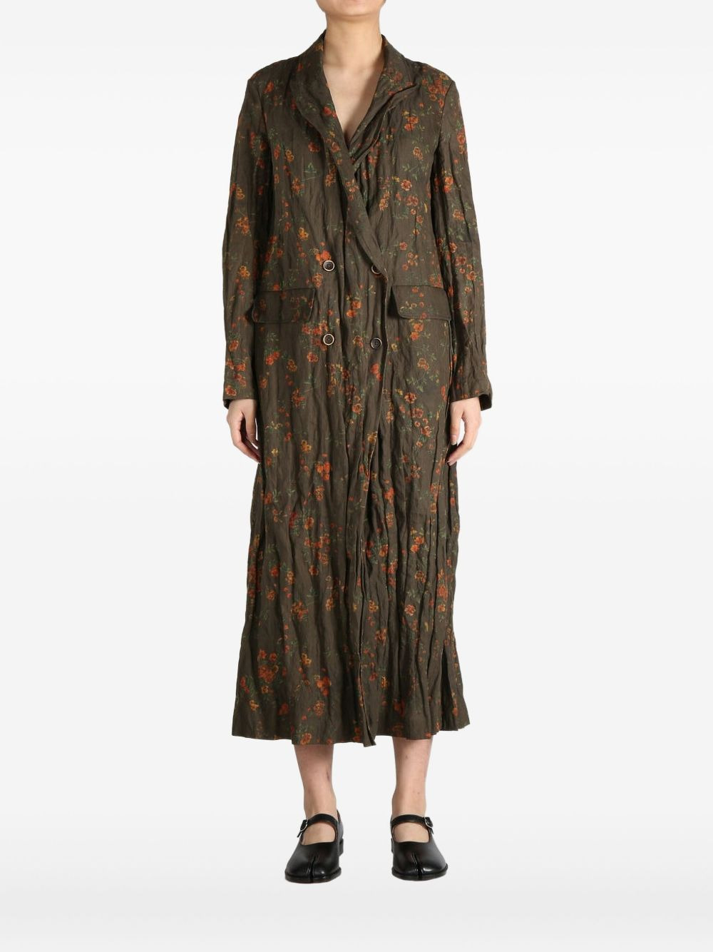 floral-print double-breasted coat Highlights - Dark green - Floral pattern - Double-breasted closure - Long sleeves - Pleated detail Made in Italy Composition Virgin Wool 46%, Polyamide 39%, Linen/Flax 15% Washing instructions Read Manufacturer Guidelines