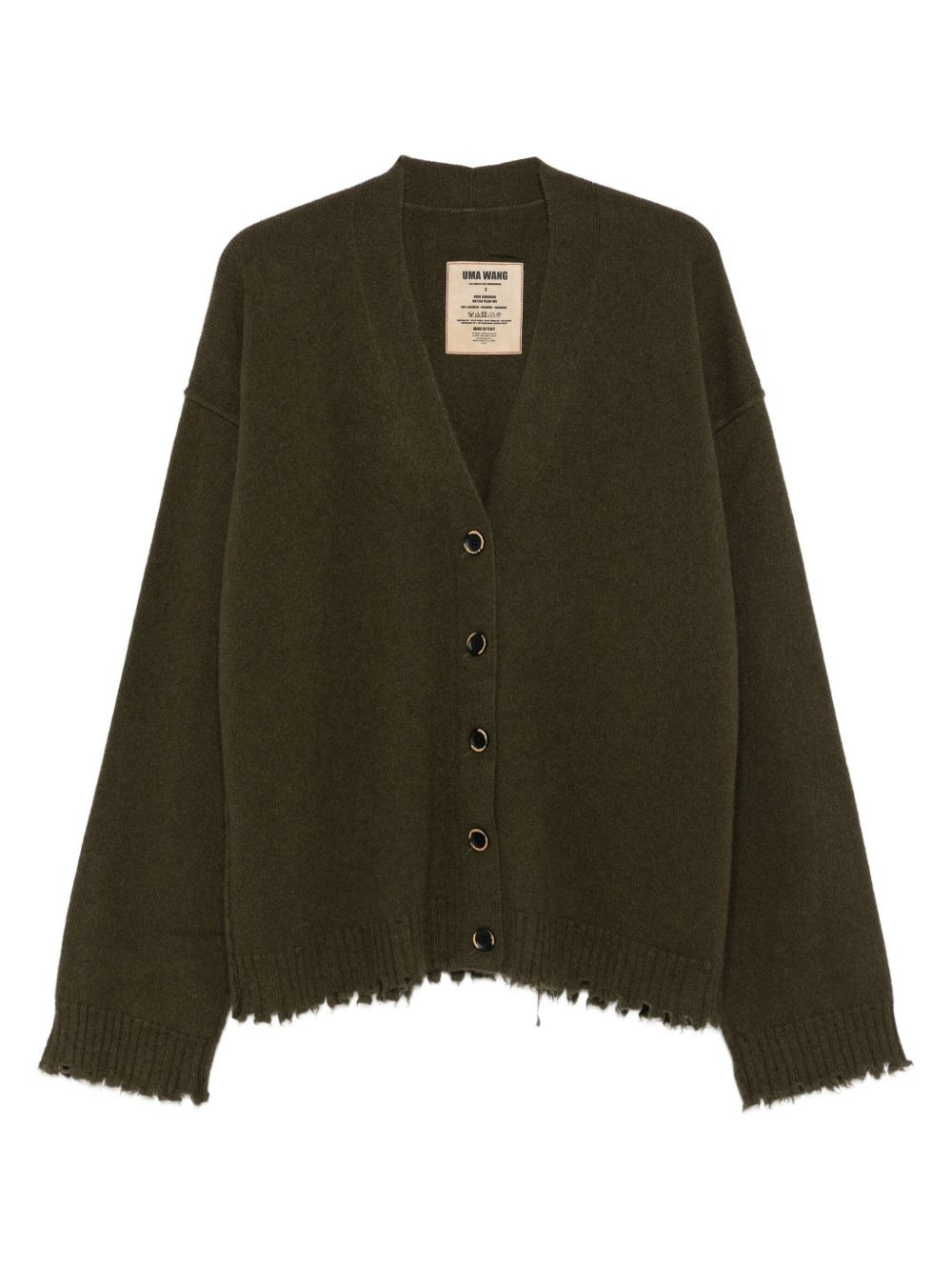 frayed buttoned cardigan Highlights - Army green - Cashmere wool - V-neck - Button front - Frayed hem - Long sleeves Made in Italy Composition Cashmere 100% SIZE & FIT Model measurements Height 5 ft 11 in(1.8 m) Bust/Chest 32.67 in(83 cm) Hips 36.22 in(92 cm) Waist 24.4 in(62 cm) Washing instructions Hand Wash